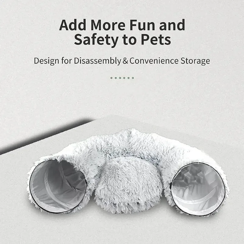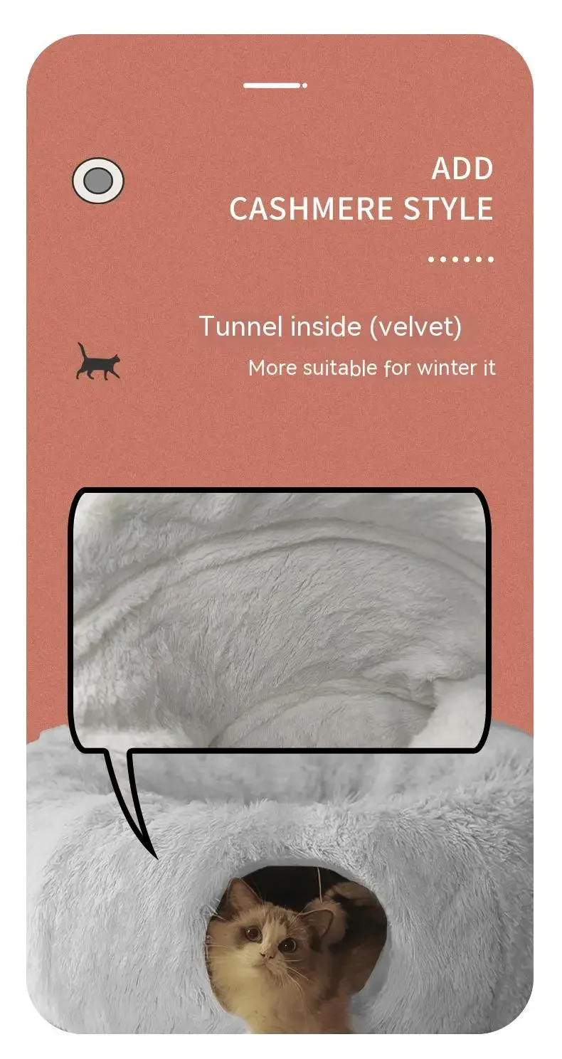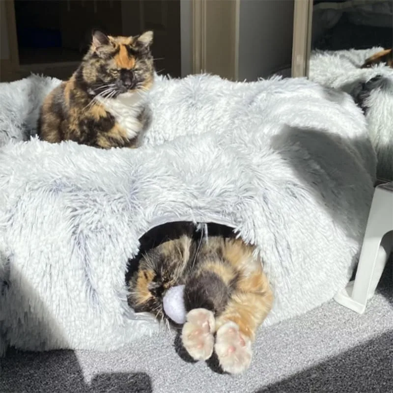 PLUSH CAT BED WITH TUNNEL: Our plush cat/dog bed tunnel is designed to provide a cozy and warm space for your furry friend to relax and sleep in. The plush material makes it soft and comfortable, ensuring a peaceful nap time for your pet.
