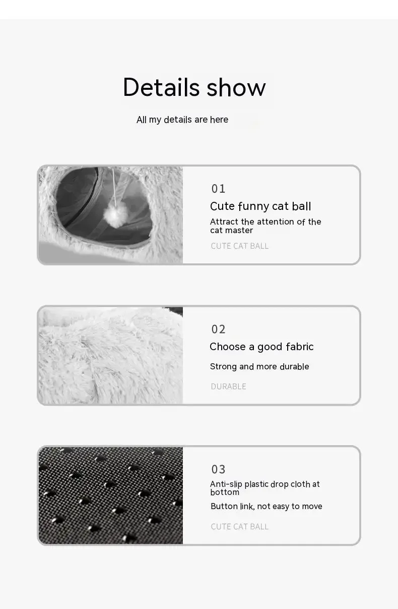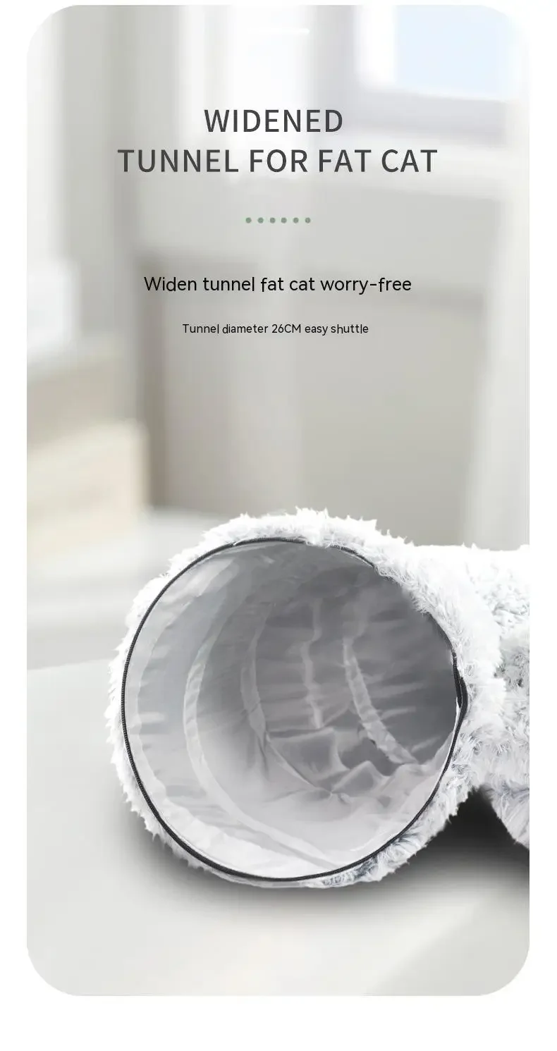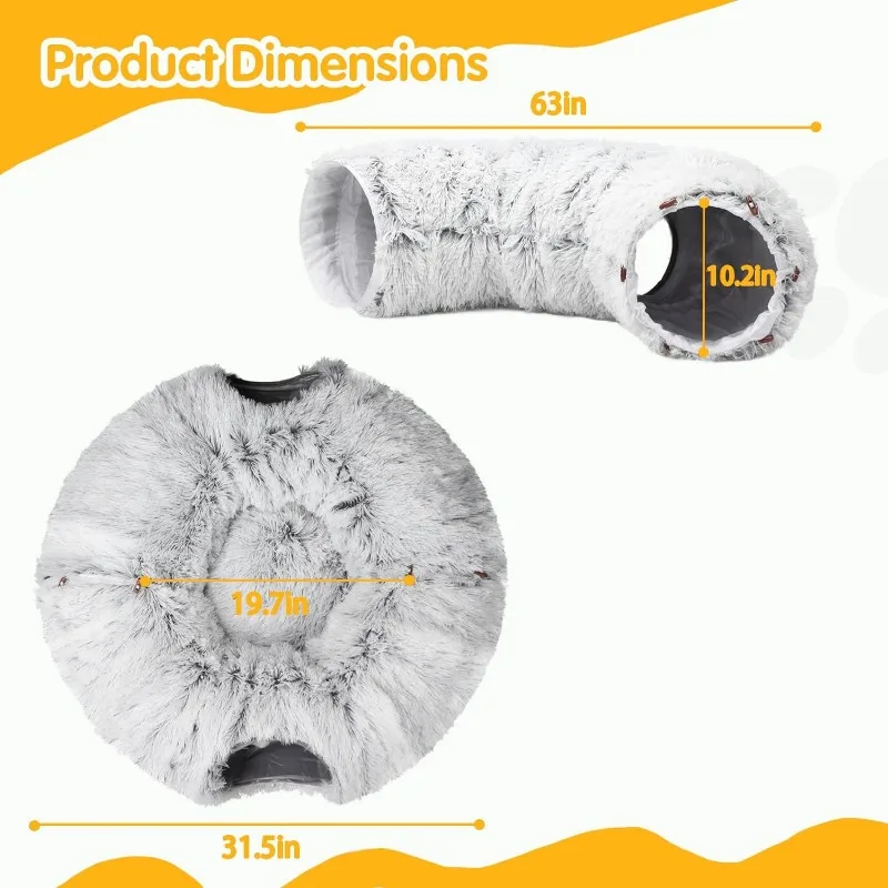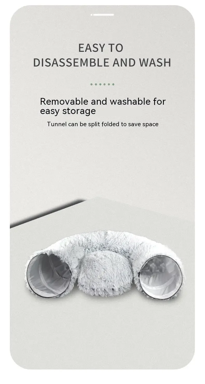 MUTI-USE: This creative cat tunnel bed meets every fun imagination of cats. They can enjoy unlimited exploration with curiosity while running in the tunnel, or enjoy the surrounded bed on the top. With buckle, it can be set for a semicircle-shape cat tunnel, S-shape cat tunnel, or round cat bed tunnel.